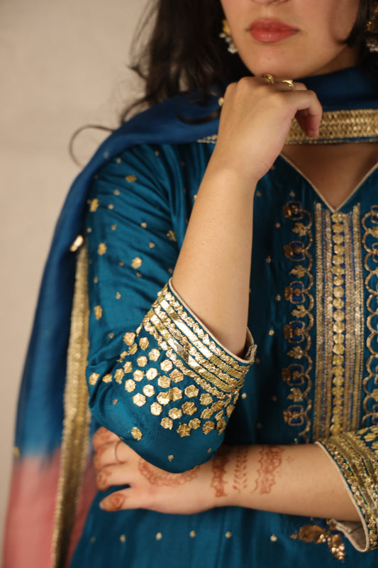 PEACOCK BLUE, EMBELLISHED SHARARA SUIT