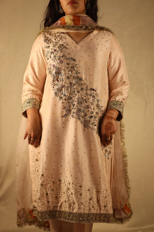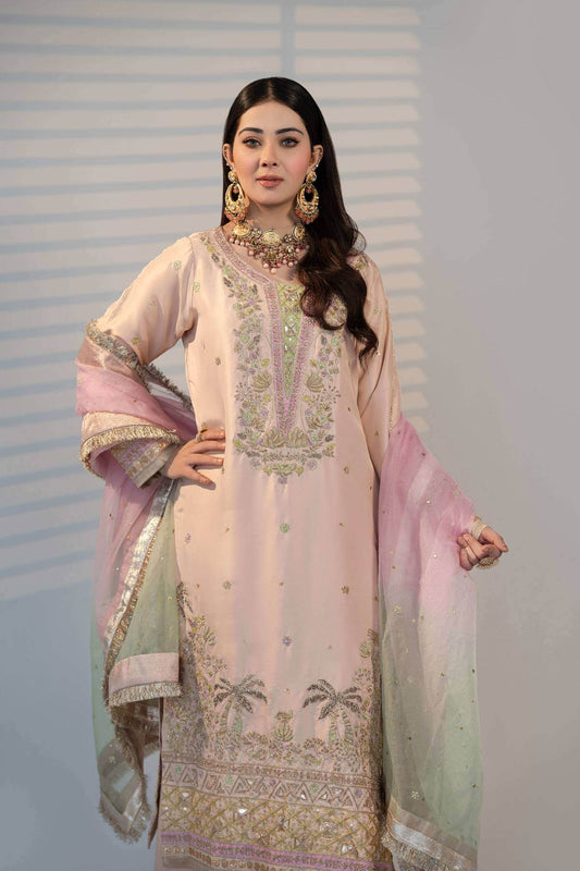 PEACH, DIAGONAL EMBELLISHED FORMAL