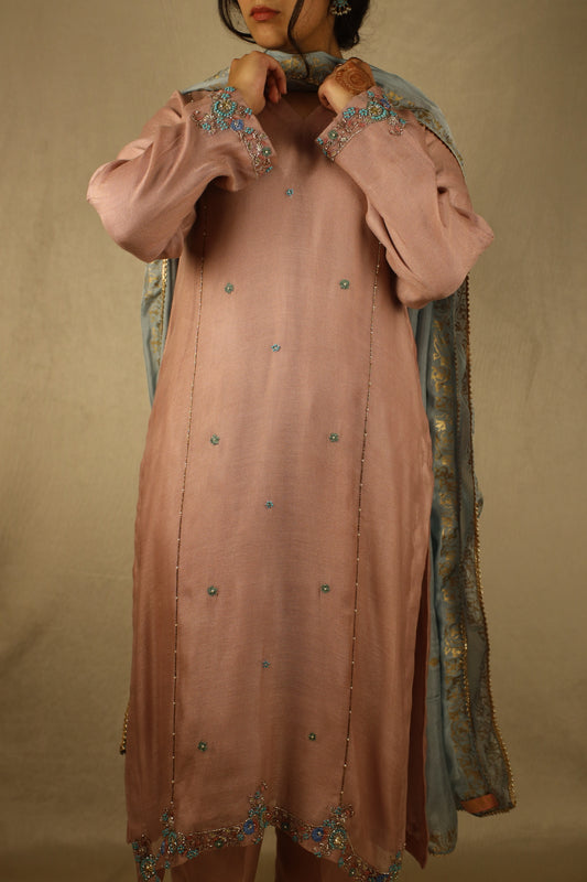 SLATE BLUE, EMBELLISHED FARSHI SHALWAR SUIT