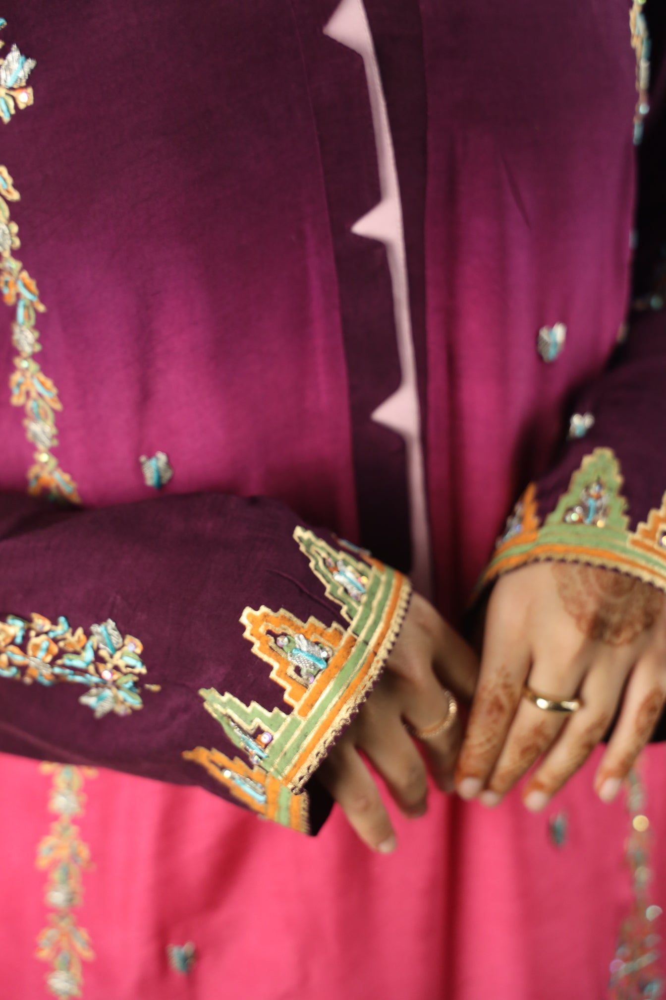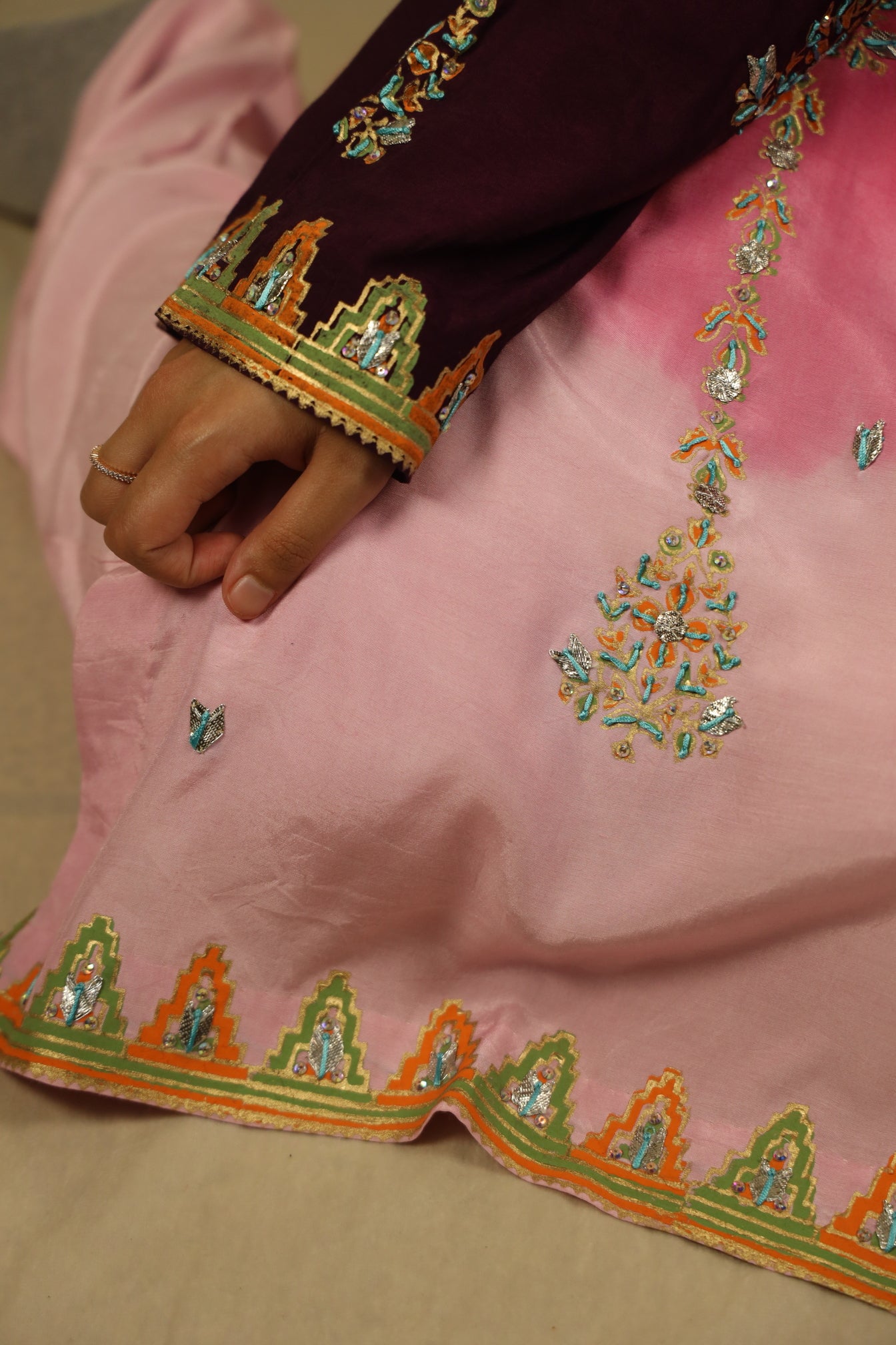 - Block printed, hand embellished
