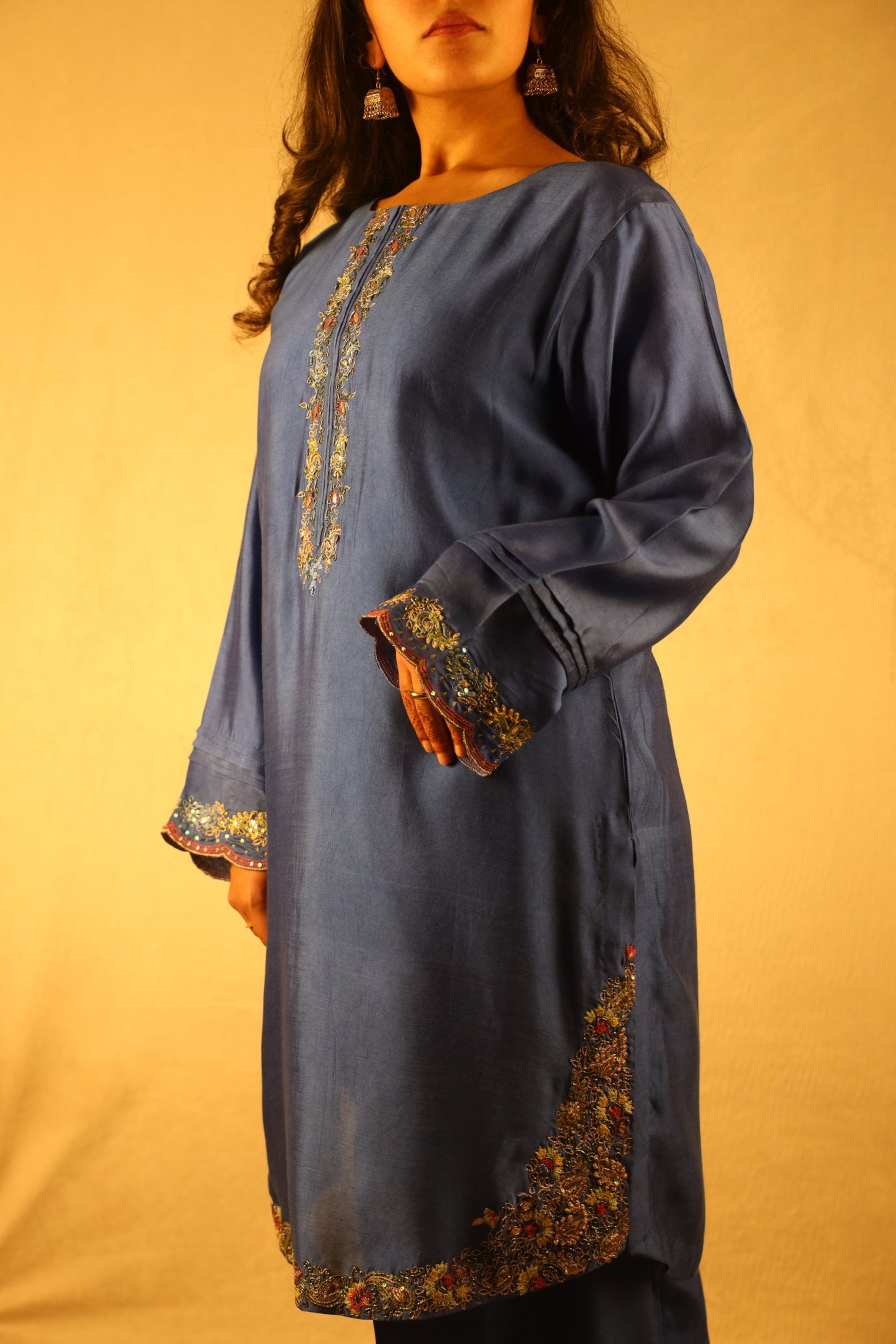 SLATE BLUE, EMBELLISHED FARSHI SHALWAR SUIT