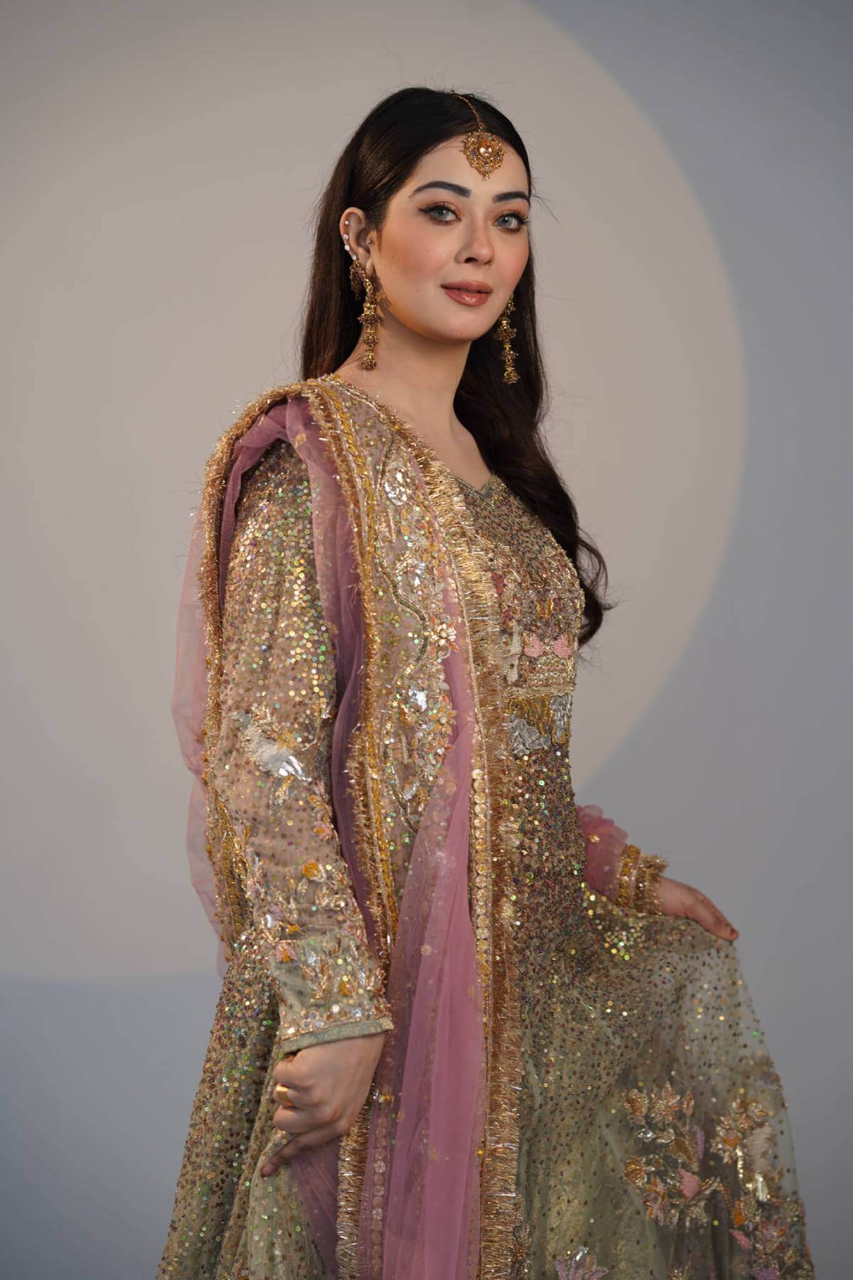 Fabric: Net Pishwas, Pure Jamawar Farshi Gharara/Lehenga